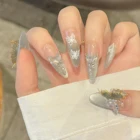 ราคาถูกและส่วนลด 10pcs Handmade กดบนเล็บ 3D คริสตัลผีเสื้อเพิร์ล Designs เล็บปลอม Glitter สีเขียวภาษาฝรั่งเศสคํา CAT EYE เล็บปลอมสําหรับผู้หญิง ขายส่ง ซื้อโดยตรงจาก Shop1103936055 Store